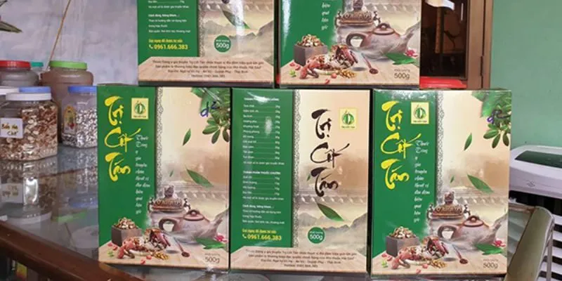 Bài thuốc Đông y gia truyền 5 đời Trị Cốt Tán của nhà thuốc Hải Sáu sử dụng các thảo dược quý từ thiên nhiên như Linh chi, Tam thất, Ba Kích, Hương Phụ, Khương Hoạt, mang lại hiệu quả điều trị thoát vị đĩa đệm một cách toàn diện. Thuốc được bào chế thành hai dạng: thuốc uống và thuốc chườm, kết hợp theo nguyên lý “Trong ẩm ngoài đồ”, giúp tác động từ bên trong và bên ngoài cơ thể.